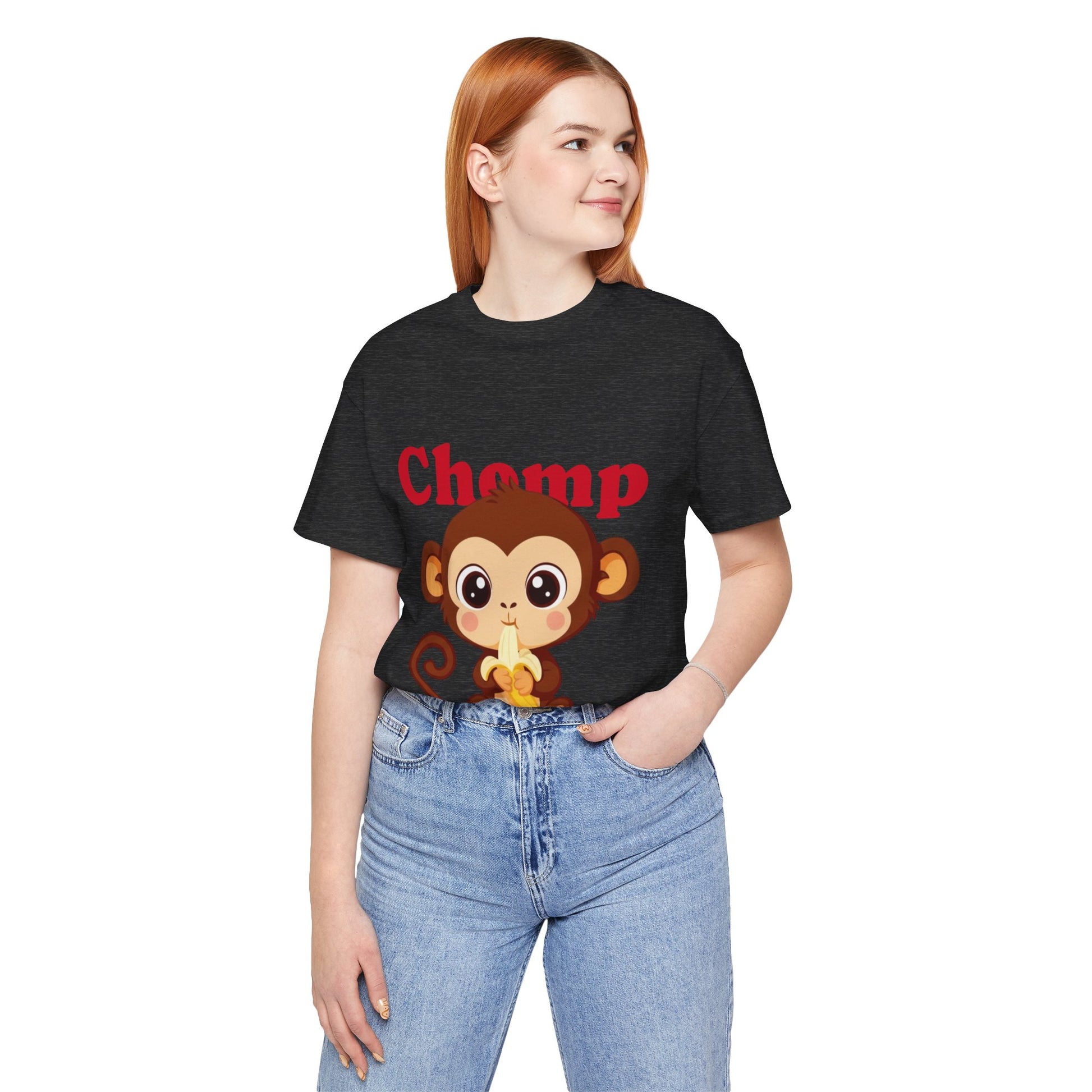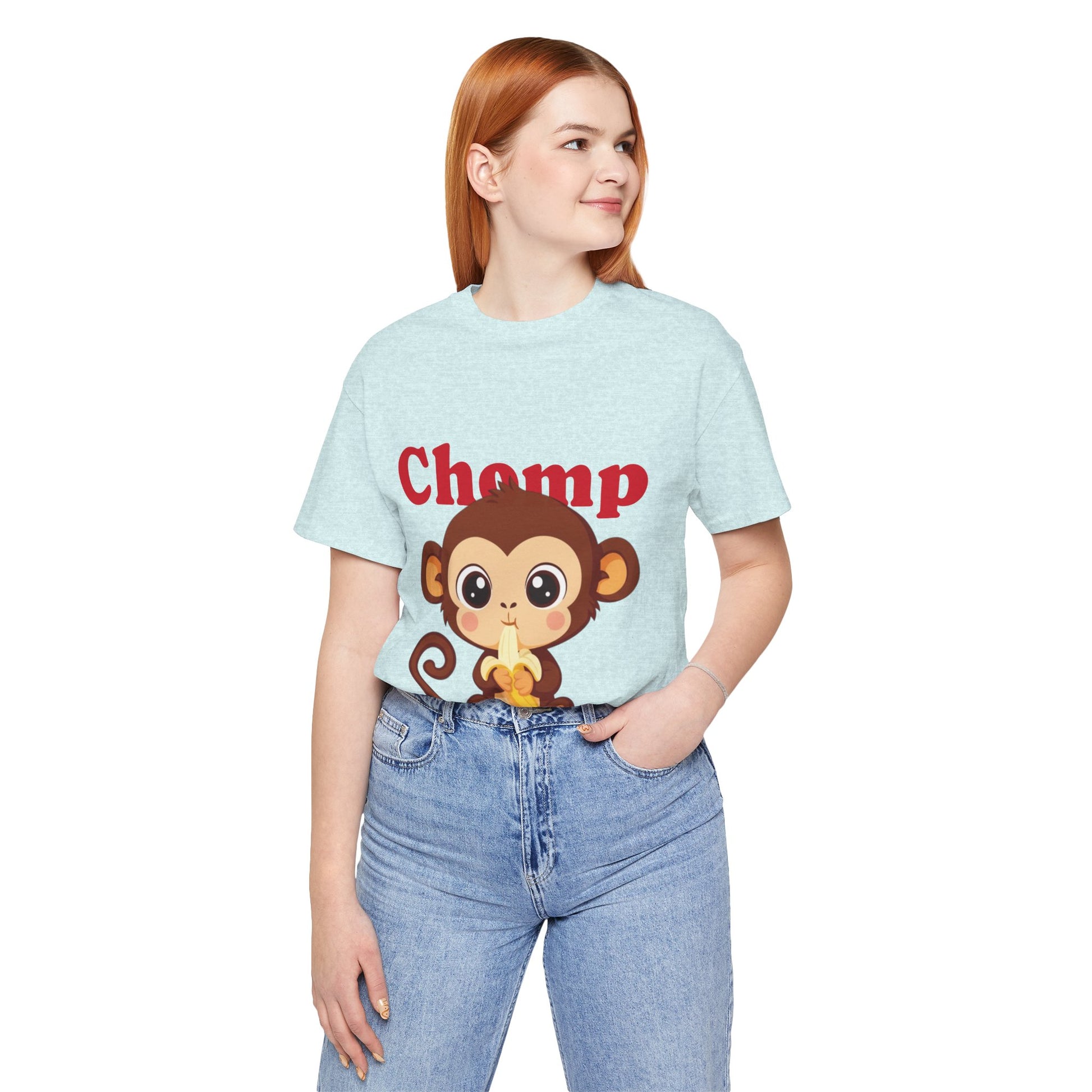 Cute Monkey Tee, Chomp Short Sleeve T-Shirt, Funny Animal Shirt, Unique Gift for Kids, Birthday Outfit, Fun Casual Wear