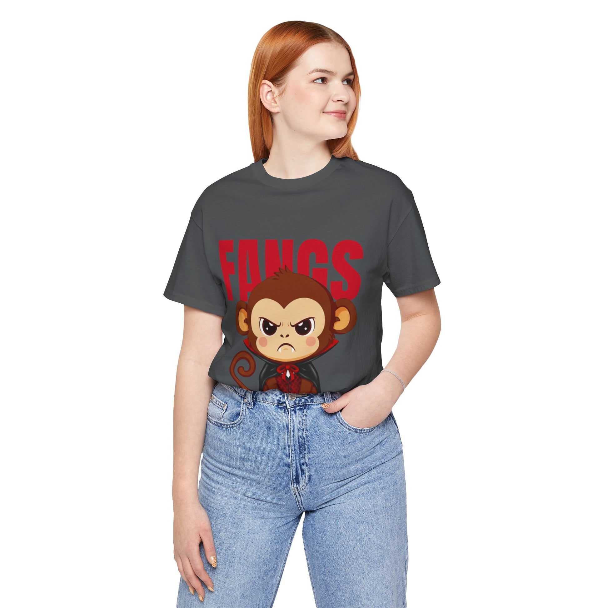 'Fangs' Monkey - Halloween T-Shirt - Fun Graphic T-Shirt, Halloween Costume, Gift for Kids, Animal Lover Apparel, Casual Wear